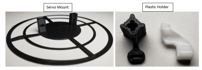 - Add the Feather to the center along with the battery. Then mount the servos with fin around the center aligned with the struct.